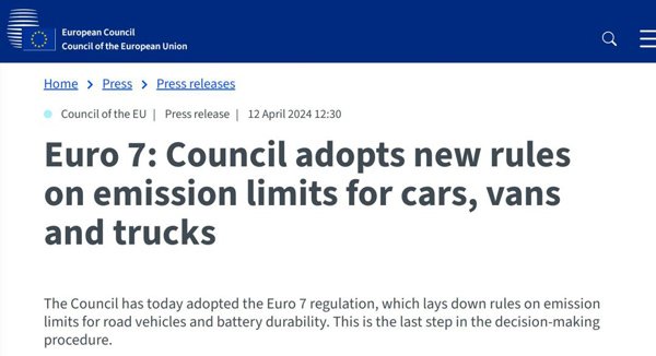 Recently, the Council of the European Union adopted the "Euro 7" motor vehicle emission standards.